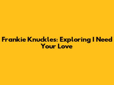 Frankie Knuckles: Exploring 'I Need Your Love'