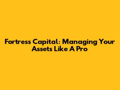 Fortress Capital: Managing Your Assets Like A Pro