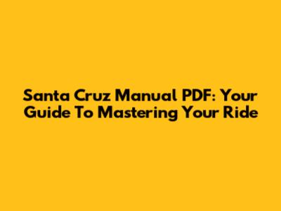 Santa Cruz Manual PDF: Your Guide To Mastering Your Ride
