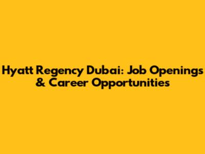Hyatt Regency Dubai: Job Openings & Career Opportunities