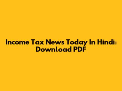Income Tax News Today In Hindi: Download PDF