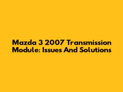 Mazda 3 2007 Transmission Module: Issues And Solutions