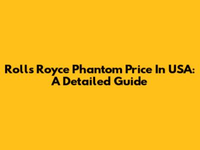 Rolls Royce Phantom Price In USA: A Detailed Guide