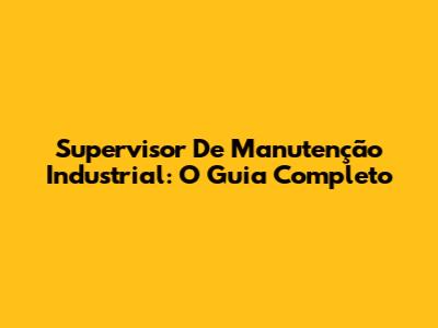 Supervisor De Manutenção Industrial: O Guia Completo