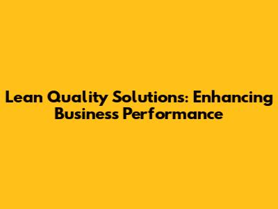 Lean Quality Solutions: Enhancing Business Performance