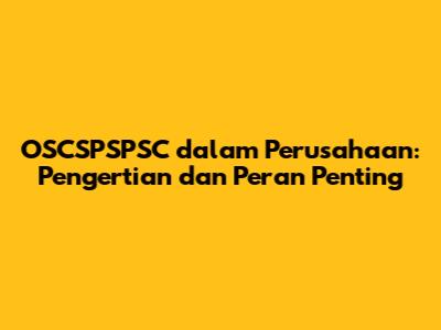 Dalam dunia bisnis yang terus berkembang, istilah-istilah baru sering muncul dan menjadi bagian penting dalam operasional perusahaan. Salah satu istilah yang mungkin terdengar asing bagi sebagian orang adalah OSCSPSPSC. Apa sebenarnya OSCSPSPSC itu? Dan mengapa hal ini begitu penting dalam konteks perusahaan? Mari kita bahas secara mendalam.