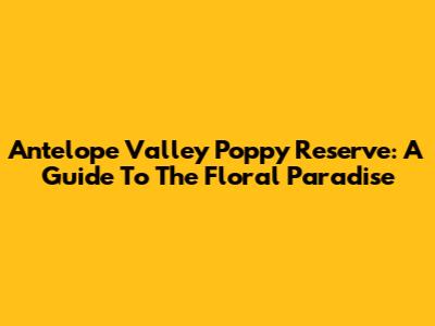 Antelope Valley Poppy Reserve: A Guide To The Floral Paradise