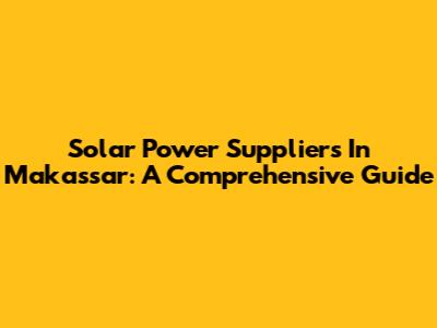 Solar Power Suppliers In Makassar: A Comprehensive Guide