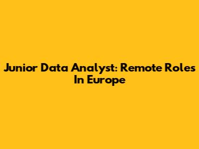 Junior Data Analyst: Remote Roles In Europe