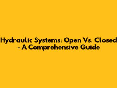 Hydraulic Systems: Open Vs. Closed - A Comprehensive Guide