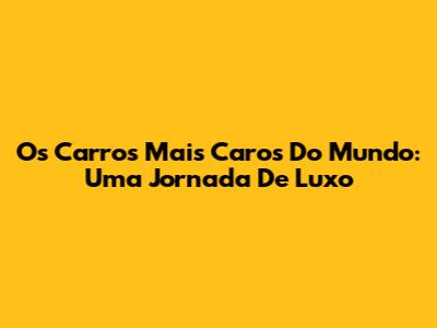 Os Carros Mais Caros Do Mundo: Uma Jornada De Luxo