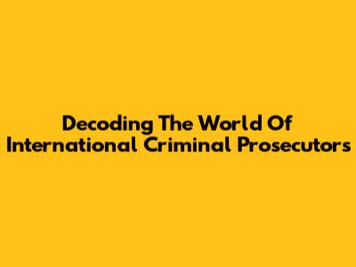 Decoding The World Of International Criminal Prosecutors