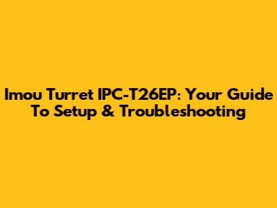 Imou Turret IPC-T26EP: Your Guide To Setup & Troubleshooting
