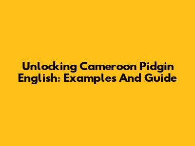 Unlocking Cameroon Pidgin English: Examples And Guide
