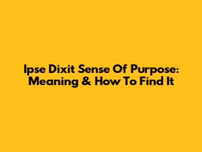 Ipse Dixit Sense Of Purpose: Meaning & How To Find It