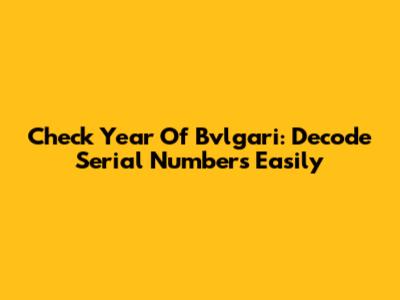 Check Year Of Bvlgari: Decode Serial Numbers Easily