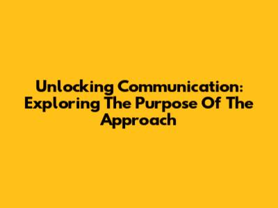 Unlocking Communication: Exploring The Purpose Of The Approach