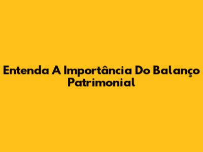 Entenda A Importância Do Balanço Patrimonial