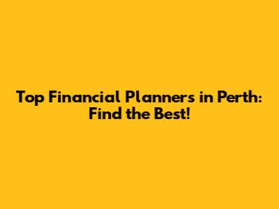 Top Financial Planning Firms in Perth