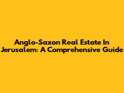 Anglo-Saxon Real Estate In Jerusalem: A Comprehensive Guide