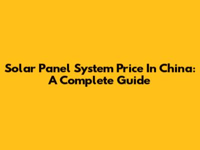 Solar Panel System Price In China: A Complete Guide
