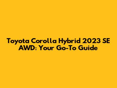 Toyota Corolla Hybrid 2023 SE AWD: Your Go-To Guide