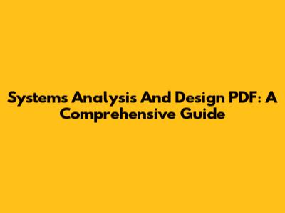 Systems Analysis And Design PDF: A Comprehensive Guide