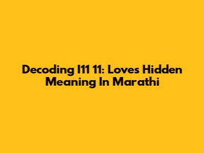 Decoding I11 11: Love's Hidden Meaning In Marathi