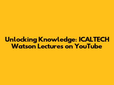 Hey there, tech enthusiasts and curious minds! Ever stumbled upon a treasure trove of insightful lectures and thought-provoking discussions? If you're nodding, then you're in for a treat because we're diving deep into the amazing world of ICALTECH Watson Lectures on YouTube. These lectures, covering a vast spectrum of tech-related topics, are a goldmine for anyone looking to expand their knowledge and stay updated with the latest advancements. Seriously, guys, whether you're a seasoned professional, a student, or just a tech-curious individual, these lectures have something for everyone. So, let's explore what makes these lectures so special and why they should be on your watch list. We will explore its benefits and also highlight some of the key takeaways to get you started on your learning journey.