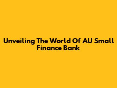 Unveiling The World Of AU Small Finance Bank