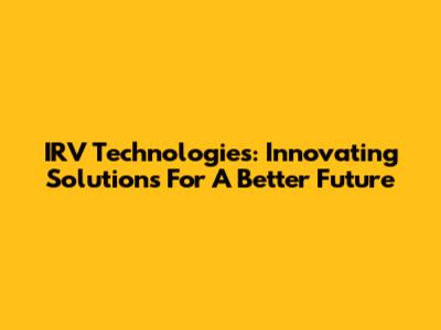 IRV Technologies: Innovating Solutions For A Better Future