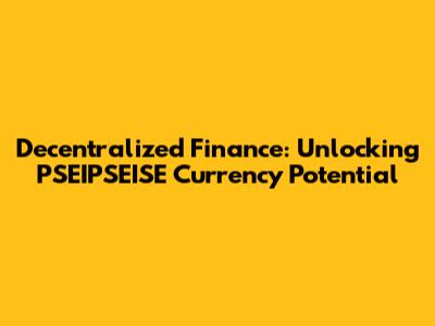 Decentralized Finance: Unlocking PSEIPSEISE Currency Potential