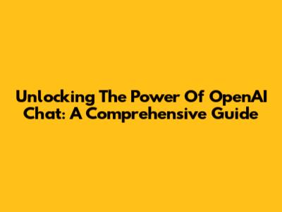 Unlocking The Power Of OpenAI Chat: A Comprehensive Guide
