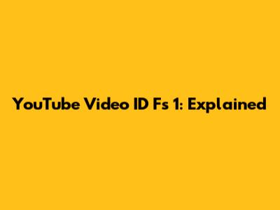 YouTube Video ID Fs 1: Explained