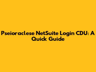 Pseioraclese NetSuite Login CDU: A Quick Guide