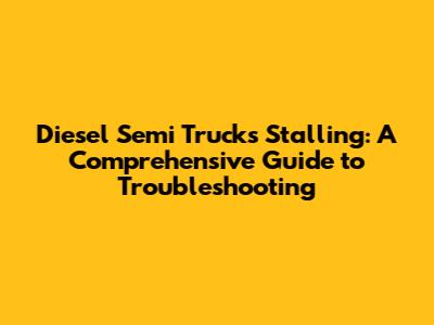 Alright, so your diesel semi truck stalled on you. Now what? Here's a step-by-step guide to get you started: